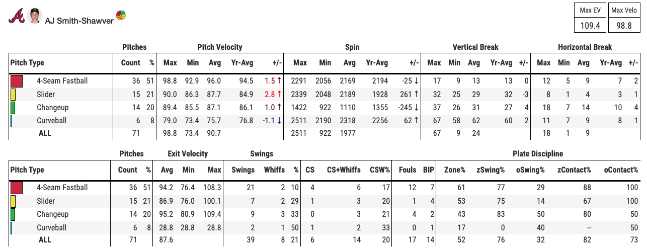 Here is his player breakdown page from his last spring start, courtesy of Baseball Savant: