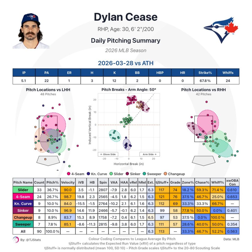 You may be asking yourself, did Dylan Cease actually incorporate this during his Blue Jays debut? There’s no way, right? He absolutely did, and the results speak for themselves.