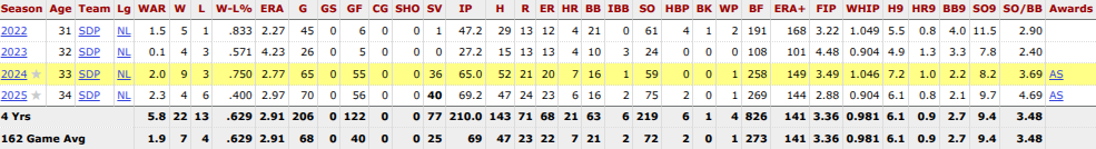 In his four total seasons with the Padres, Suarez more than delivered pitching to a 2.91 ERA, 0.981 WHIP, 3.38 K/BB, and 77 total saves across 206 games.