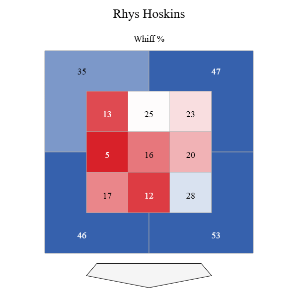 Instead, Hoskins has had a great offensive success by doing damage on pitches within the strike zone and capitalizing on pitches over the heart of the plate throughout his career.