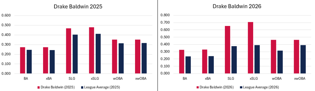 After a Rookie of the Year campaign last season, Drake Baldwin is bucking the trend of the sophomore slump.