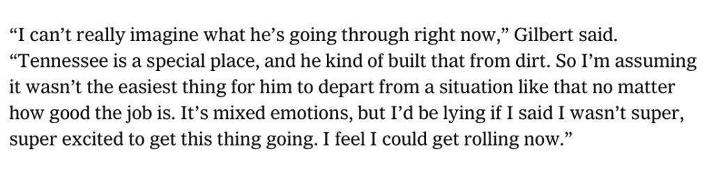 Now, San Francisco just hired Gilbert’s college skipper in Tony Vitello to be the team’s next manager. The historic decision has the Giants’ outfielder as excited as ever.