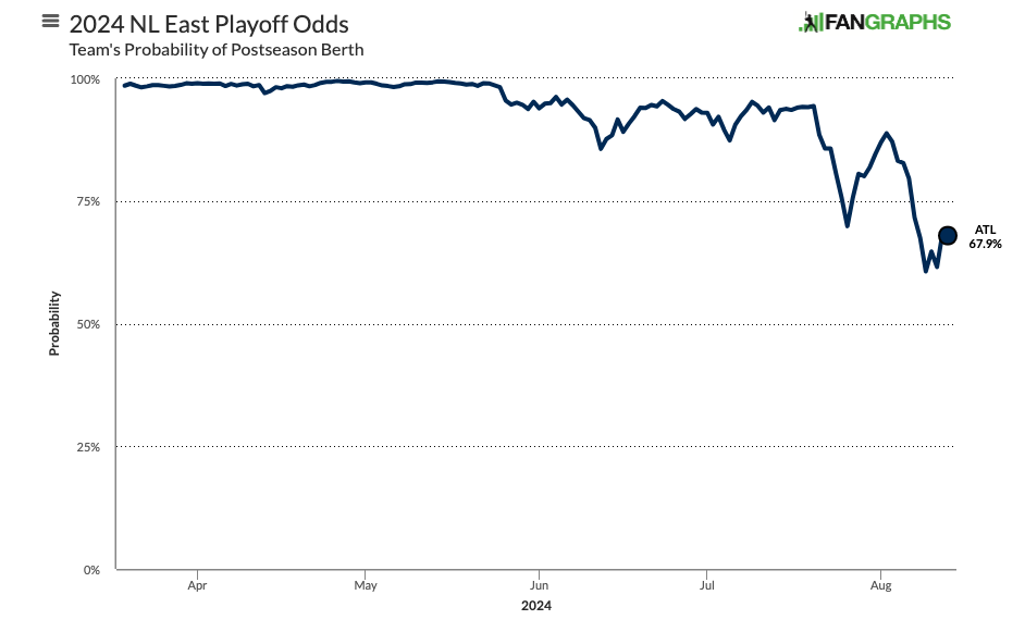 But after a six-game losing streak almost immediately out of the All-Star break, and another six-game skid from Aug. 3 to 9, Atlanta looks its most vulnerable since that vaunted 2021 campaign.