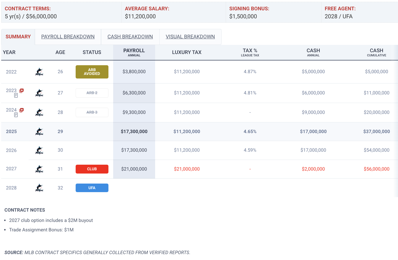 As I mentioned at the beginning of this article, Sandy’s days in Miami are likely numbered. Back in 2022, Sandy and the Marlins agreed to an extension that looked like a bargain after he clearly outpitched that in his first season.
