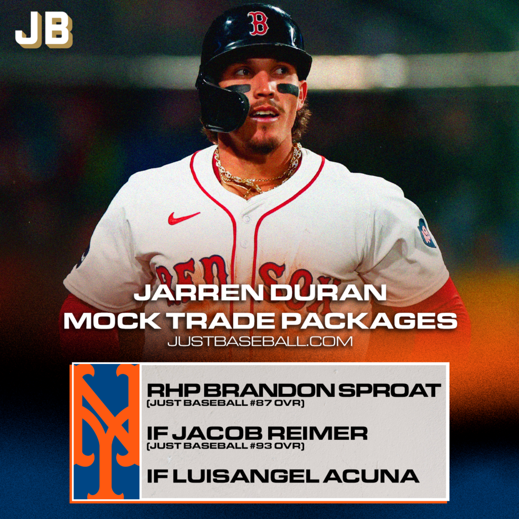 Rounding out the trade packages is perhaps the team most in need of Duran’s services. Having dealt Brandon Nimmo to Texas, the Mets’ outfield is no longer a position of strength, even with Juan Soto.