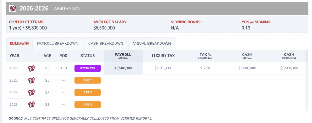 CJ Abrams is entering his first year of Arbitration heading into the 2026 season, but as a Super-Two player, he comes with four years of team control through arbitration.