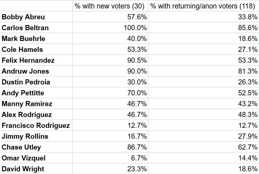 Most of the notable candidates on this year’s ballot are comfortably overperforming with first-time voters. Although more votes are now needed for induction, this new wave of younger voters is setting up a big year for several candidates.