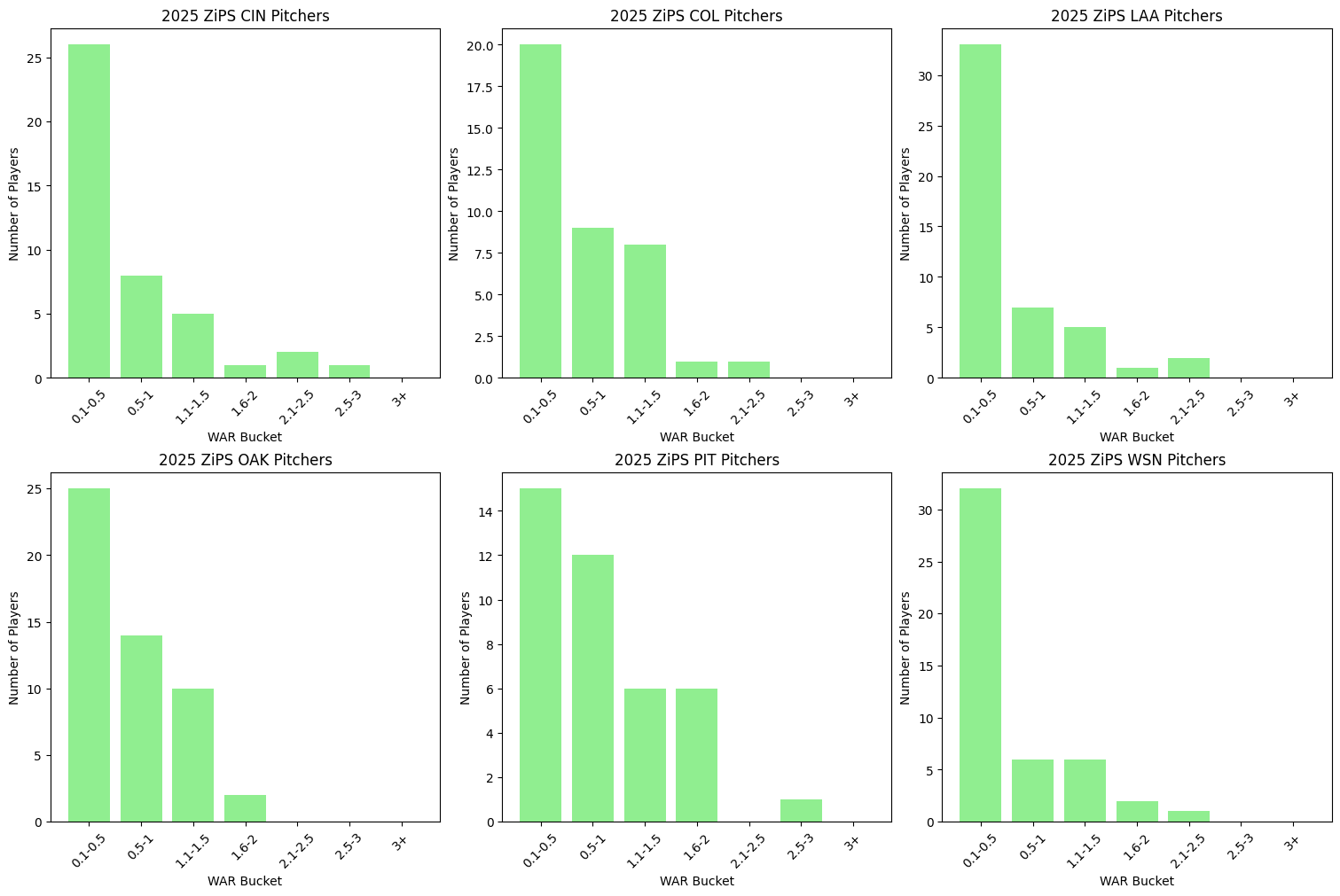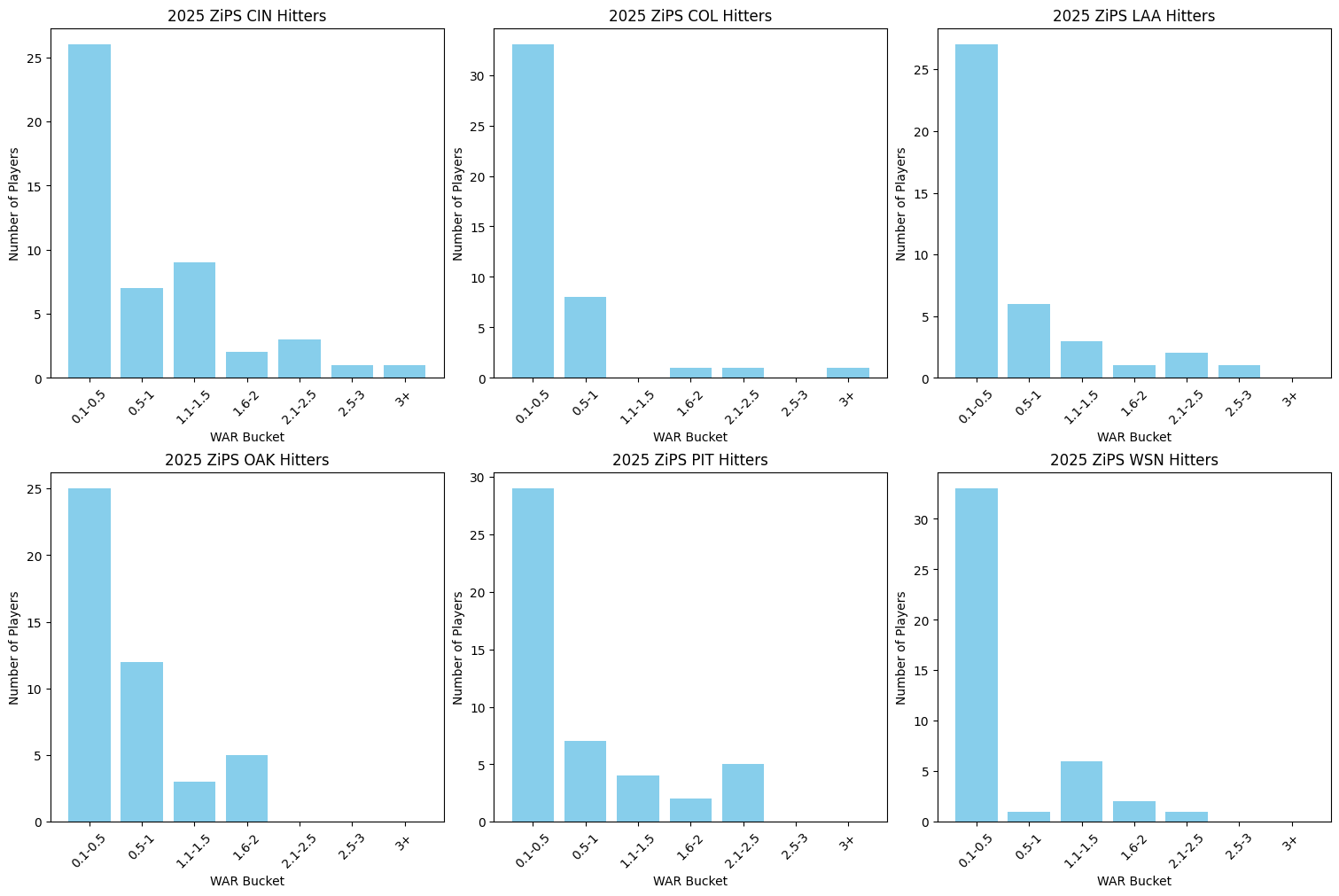 Above are the fWAR buckets that ZiPS has for each of the six clubs’ hitters for 2025.
