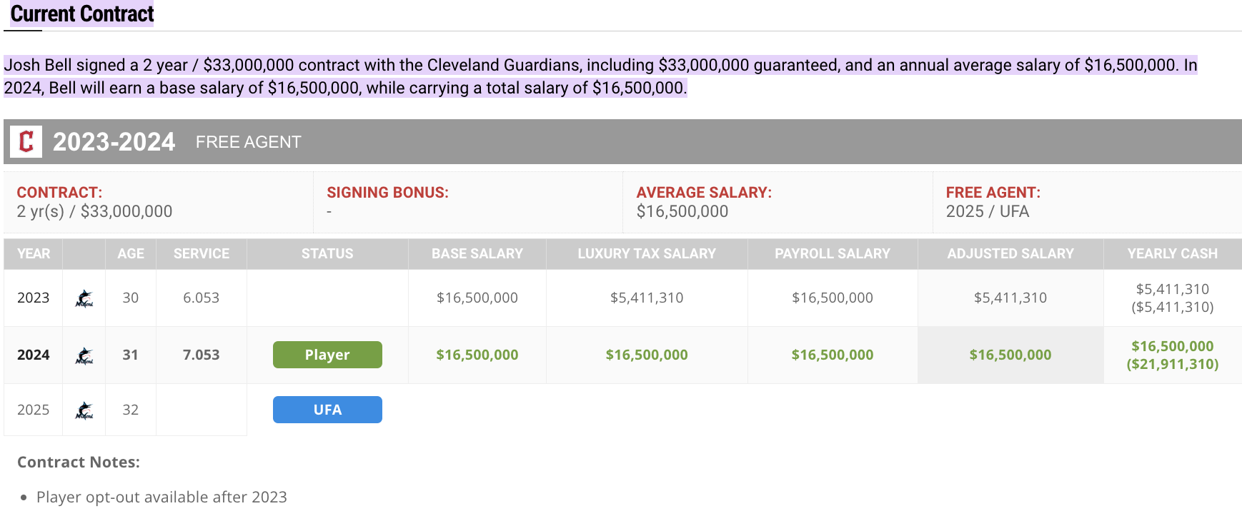 Given the weak upcoming free-agent class, highlighted by Shohei Ohtani and Cody Bellinger, Josh Bell finds himself comfortably in the next tier of potentially available players, alongside teammate Jorge Soler, who also has a player option he needs to make a decision on; Matt Chapman; and Jeimer Candelario.